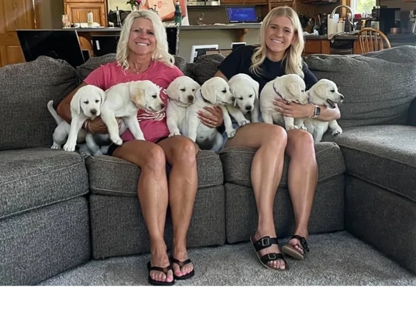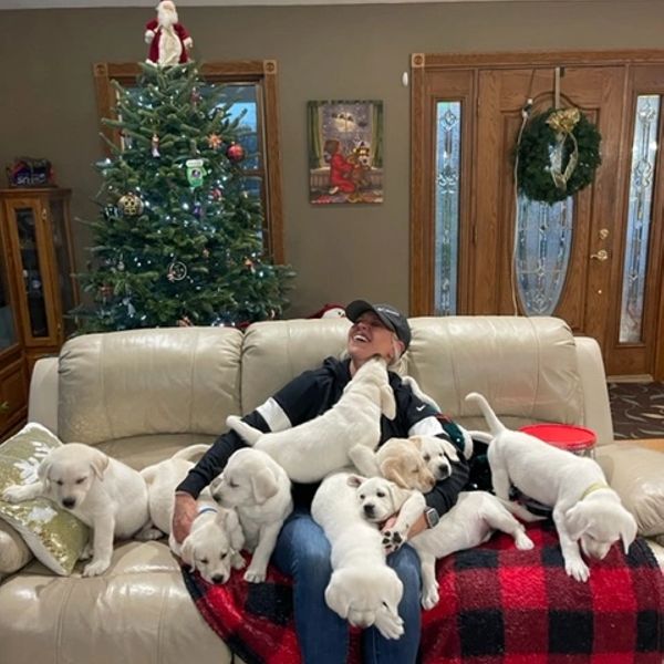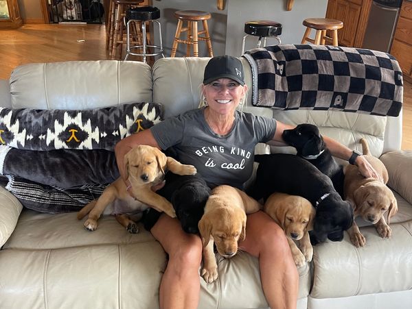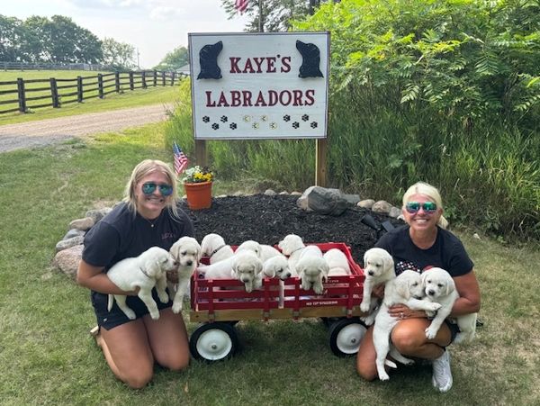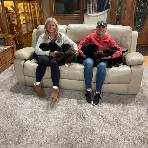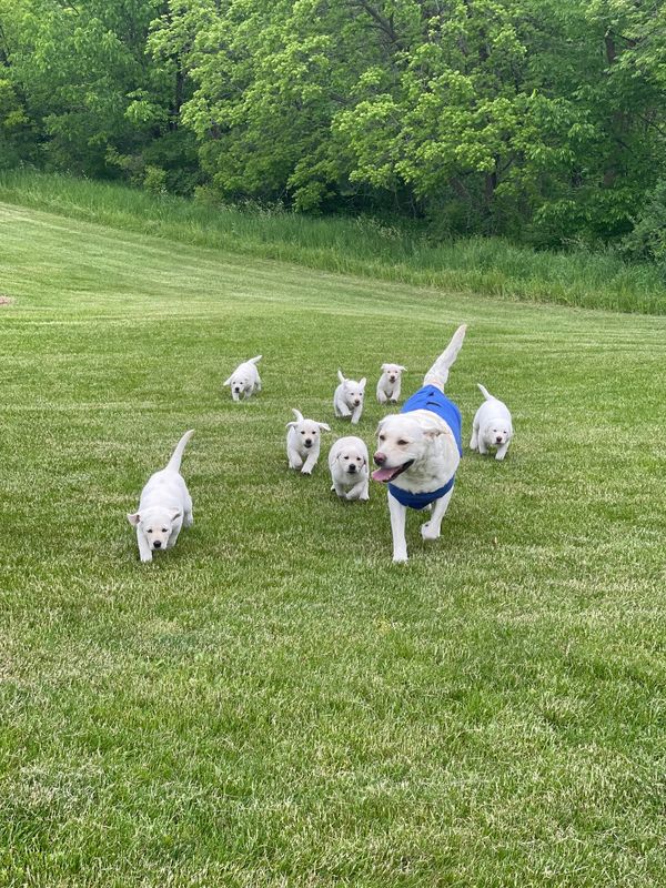 Bella blessed us with (10) babies on September 19, 2023. This was a new stud dog for us and he did not disappoint! And it was our first group with chocolates and blacks for Bella, a step away from her traditional all yellow litters. They are absolute perfection and just the best, we even decided to keep one ourselves.